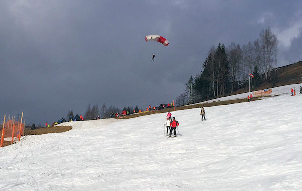15.30 hrs First jumper lands from the WIDi load - so we have the altitude and we can start round 3 Accuracy. The first jumper is the Single Starter Jiri Cerny, followed by The Netherlands Team, then Mixed Team 1 followed by the Russian Female team. At least I am sat in a warm office just down from the target area whilst 'Casi' is working with the camera.