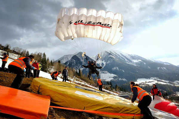 Yesterday also proved to be both a lucky and unlucky day for one competitor, Hielke Bootsma, the Netherlands. On his third jump of the competition, his canopy broke several lines and though he continued to fly it and landed safely it is seriously damaged. So lucky and unlucky as he will not be jumping in the competition any more.