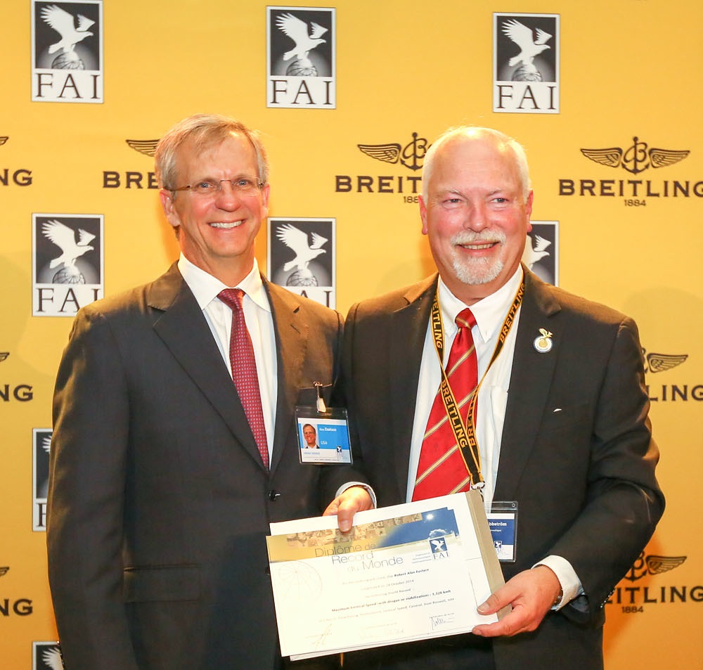 Alan Eustace (left) and John Grubbström at the FAI Awards Ceremony 2015. Credit: Fayez Mansour