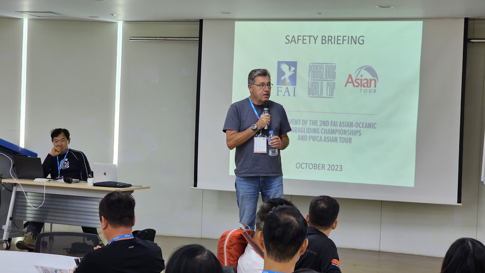 The test event of the 2nd FAI Asian Oceanic Paragliding Championships was successfully held in Mungyeong South Korea. Unique in its kind it was also a stage of PWC Asian Tour. Both FAI CIVL President Bill Hughes and PWC President Goran Dimiskovski have noted this collaboration as challenging but very successful. The event was organized by KPGA Korean Paragliding Association headed by Gin Seok Song,  the president, and Han Yun Jo, the general manager. It started on October 6, 2023 and lasted 9 days till October 14, 2023. 91 pilots from 6 Asian-Oceanic and 8 guest nations came to compete in Mungyeong. Pilots from AustraliaChina, Hong Kong (China), Japan, Kazakhstan, and South Korea, were representing the continental championship. The test event enjoyed 6 valid tasks of which 3 were short due to weak conditions but still were very challenging as required a lot of piloting knowledge, skills, and tactical decisions.