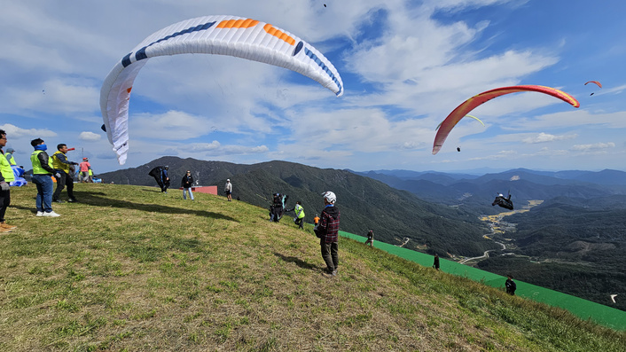 Mungyeong flying site is a regular place for the event of the Korean paragliding league. So most of the local pilots were very familiar with it. From the safety side, there were no major issues. One day the launches were subjected to constant wind direction change but the pilots coped with this thanks to a 270-degree take-off. On another day one Korean pilot overestimated his wing and skills and landed in a tree. A mountain rescue team brought him down and ran a medical check  - the sportsman was uninjured. The zone is also an operation site of Mungyeong Tandems. Many people especially come there for a flight over breathtaking landscapes.