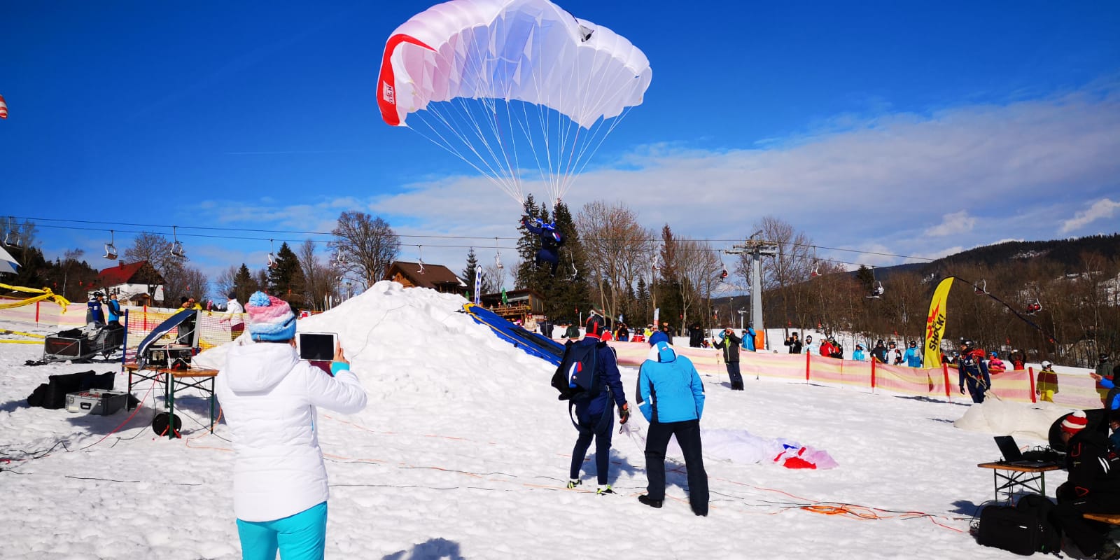 - In accuracy landing the distance from the standard 2cm dead centre to the first point of landing for each jump is measured in centimeter (=points) up to a 50 cm maximum. Due to the history of Para-Ski from mountain evolving rescue operations in early 1950's (when no helicopters were available), the target is placed on a 30° slope simulating the mountain.