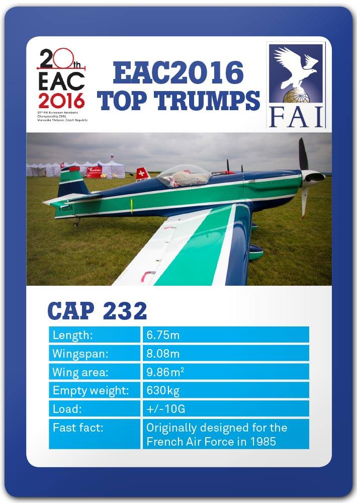 The other two popular planes at the competition here at the European Aerobatic Championships are the Sukhoi and the CAP 232.