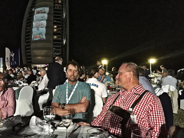 Tonight was the opening banquet for the World Air Games, held in the grounds of the hotel next door to the Hotel Burj Al Arab - a fantastic setting, where we were served with more amazing food, and two medal ceremonies took place for the Glider Aerobatics and Powered Aerobatics.