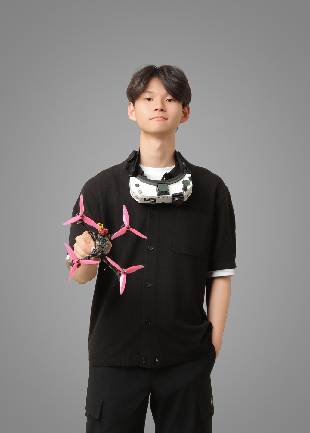Drone racing first caught Choi's eye around 4 years ago, and after seeing the F1 style sport he focused his full attention on training with FPVs. As someone who loves the thrill of a live action race, the World Drone Racing Championships in China in 2024 were an impressive experience for this young pilot, who seized a fourth place among the juniors, and a sixth place overall.