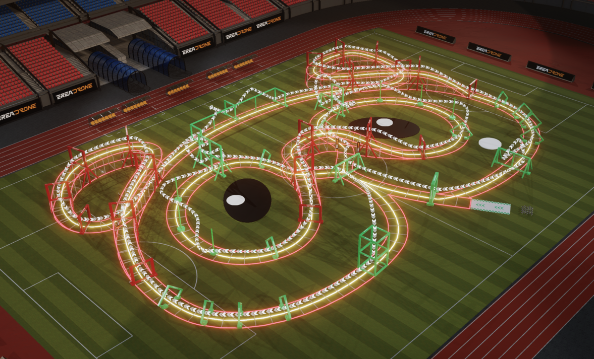 Non-metallic materials will be used for the track including support structures and the gates/obstacles, such as composite impact-resistant plastic pipes, wooden materials (e.g., wooden boards), and high-density polystyrene materials. This aims to minimize video interferences on the drones. Track lighting will be done with dedicated flexible silicone outdoor waterproof 360-degree LED lighting materials of different colors.